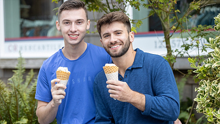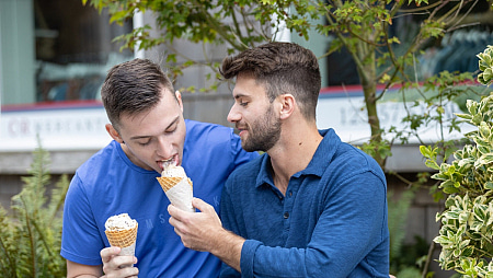 Things kick off with Chris and Eli looking beyond adorable with one another as they share some ice cream cones while out and about on the Oregon coast. The real sweet stuff follows as they polish off their ice cream and make their way to the bedroom, though, to polish each other's knobs!